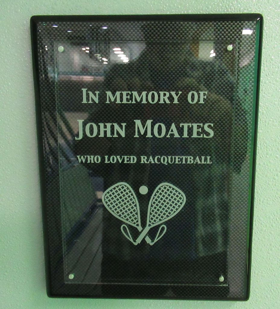 Thanks to Liz Johnson, Recreation Superintendent at Euless Parks and Community Services, we now have a plaque to commemorate John’s bench at the Euless Family Life Center. What a wonderful tribute to our friend who we miss every time we play. The bench is located next to the racquetball courts.